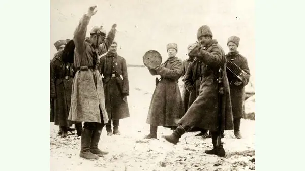رقصاندن تحقیرآمیز اسیر آلمانی توسط سربازان روسی + عکس