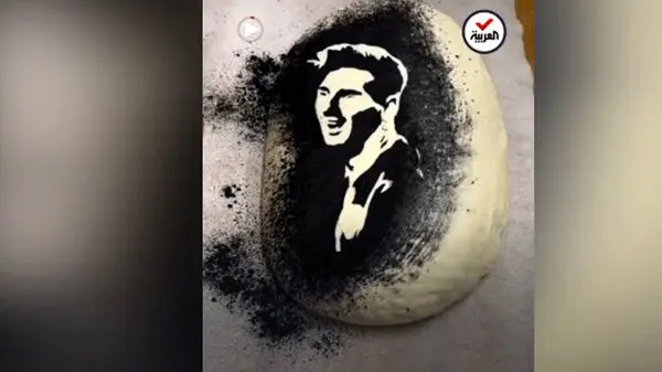 رکنا : چهره اسطوره های فوتبال بر روی لقمه نان نقاشی شده است.