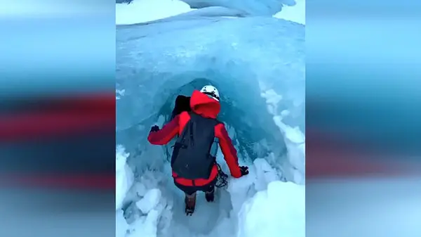 پنهان شدن غارهای یخی در یخچال های قطبی + فیلم