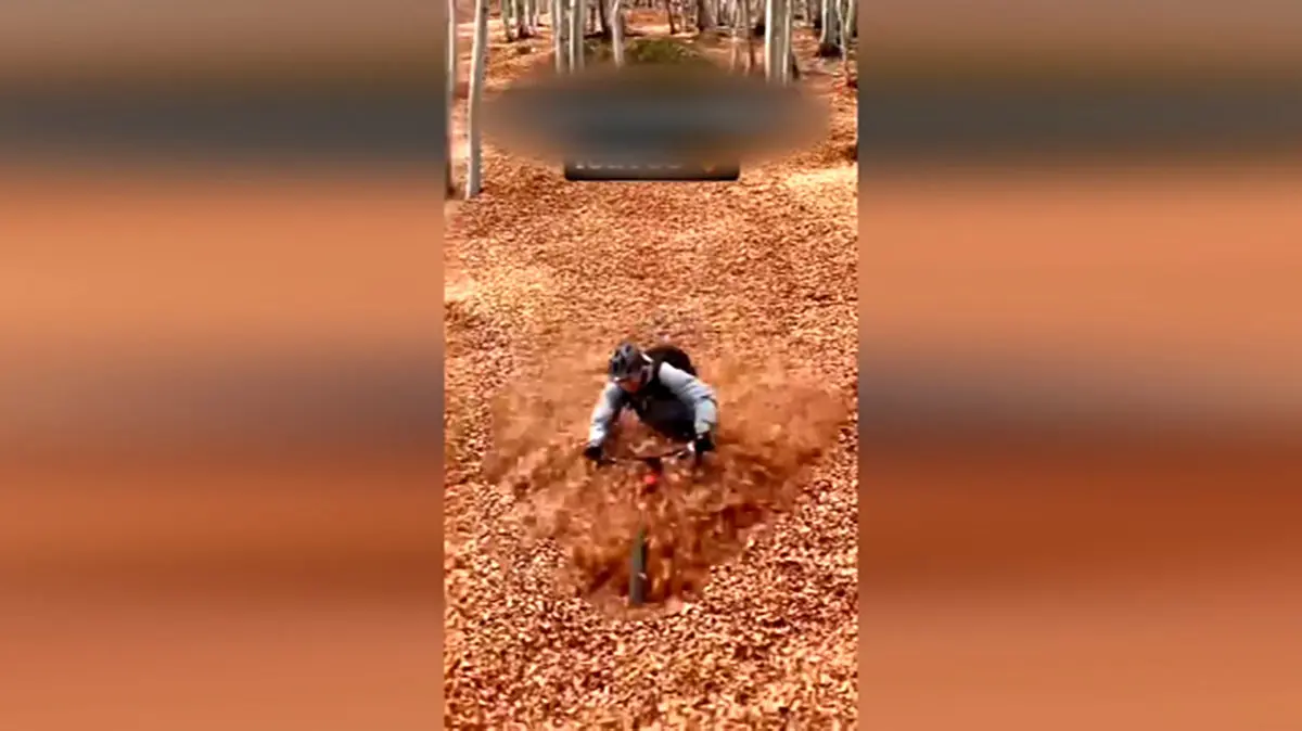 دوچرخه سواری که برگ ها را له کرد + فیلم