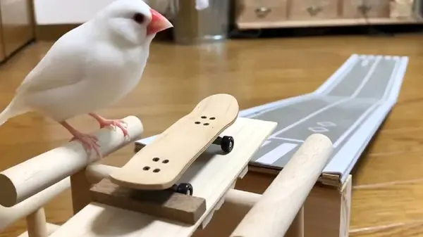 ویدئویی از اسکیت سواری یک طوطی قابل مشاهده است.