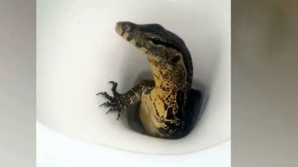دیدن بزمجه در سرویس بهداشتی محل گردش یک زوج انگلیسی آنها را غافلگیر کرد.