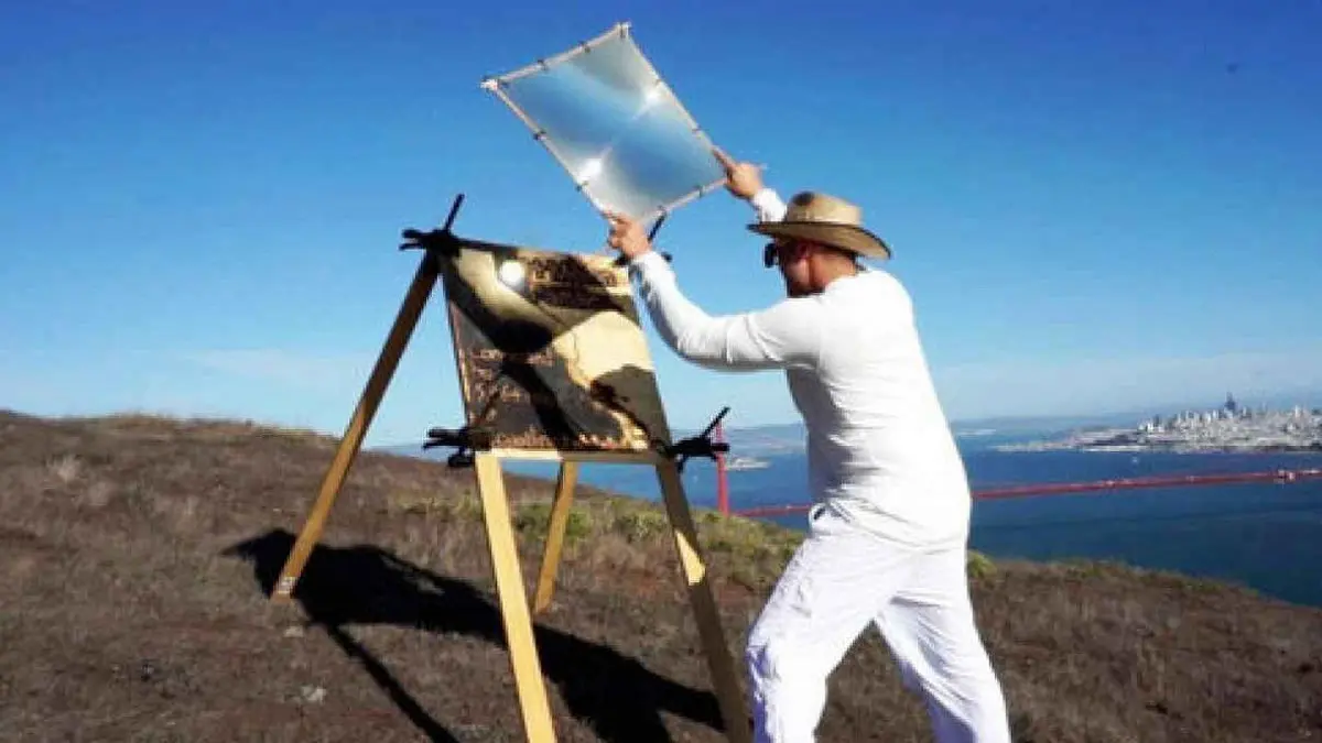 یک هنرمند از تکنیک جدیدی برای خلق نقاشی استفاده کرده، به این صورت که با استفاده از نور منعکس شده خورشید در لنز و آینه، روی سطوح، اثر هنری مشابه با نمونه واقعی خلق میکند.