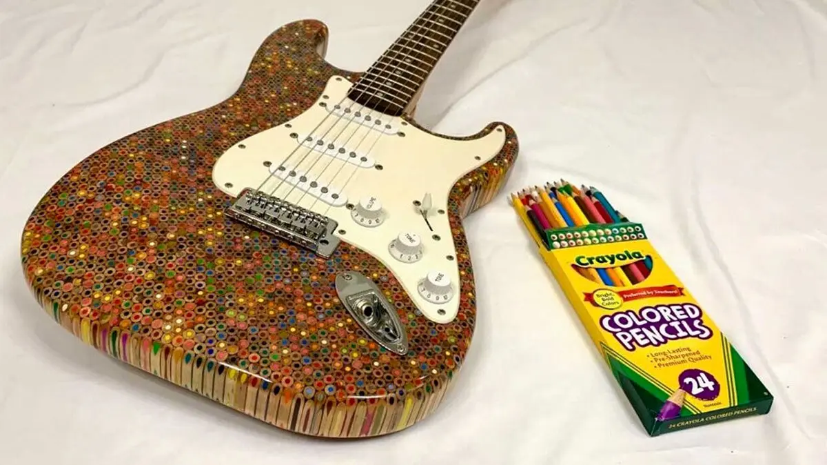 یک هنرمند خلاق در اقدامی کم نظیر با استفاده از چند صد مداد رنگی موفق به ساخت گیتار الکتریک شد.