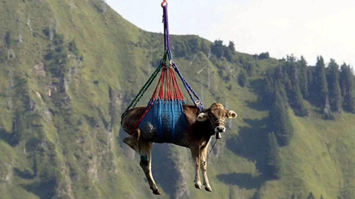هلی برد گاوها در سوئیس امری عادی است.