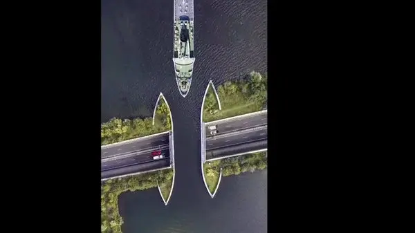 به گزارش رکنا، طراحی خیابان ها علم مهندسی ویژه ای را می خواهد. در این فیلم خواهید دید که چطور خودروها در حال تردد در خیابانی دوطرفه هستند که در وسط آب رودخانه ساخته شده است. جالب است که یک مسیر ویژه برای عبور کشتی نیز تعبیه شده است که به طور همزمان هم خودروها از دل آب عبور می کنند و هم کشتی در حال عبور از آب است.