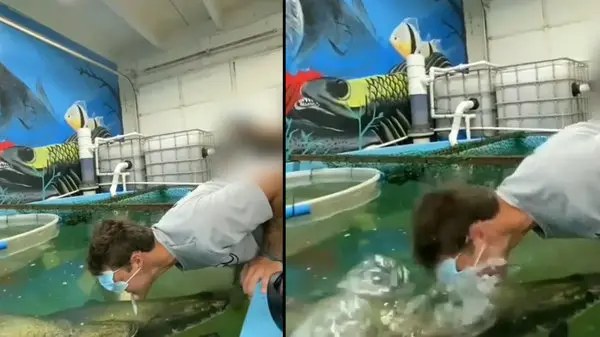 حمله ماهی آکواریومی به توریست بازیگوش + فیلم