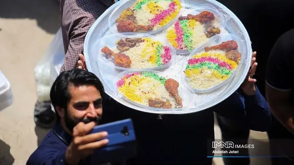 به گزارش رکنا، مردم روستای اراضی مبارکه در اصفهان با طبخ غذا در خانه‌های خود و با تزئینات زیبا داخل سینی میزبان عزاداران حسینی هستند. تزئینات غذاها آنقدر زیبا و جذاب است که عزاداران با آنها عکس می‌گیرند. یکی از عجیب ترین و رنگی ترین غذاهای نذری محرم را به تصویر کشیده ایم.
