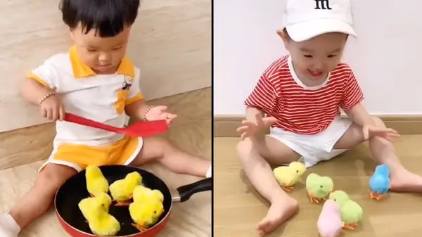 رکنا: این جوجه های رنگی سوژه خوبی برای واکنش بچه ها شدند.