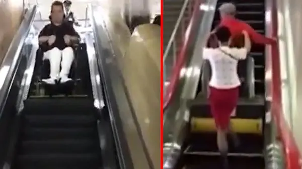 ببینید / فیلم باورنکردنی از انتقال ویلچر بر روی پله برقی برای افراد ناتوان حرکتی
