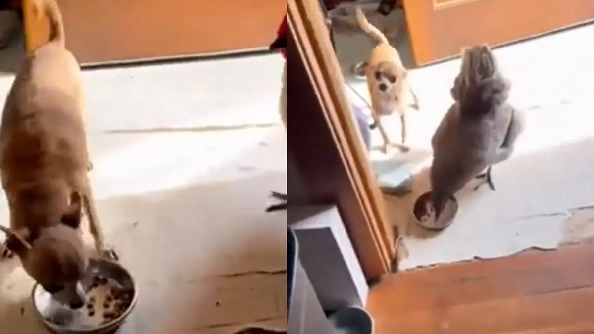 رکنا : کاربران ویدئویی از درگیری بامزه بین مرغ و سگ برای غذا خوردن در فضای مجازی منتشر کردند.