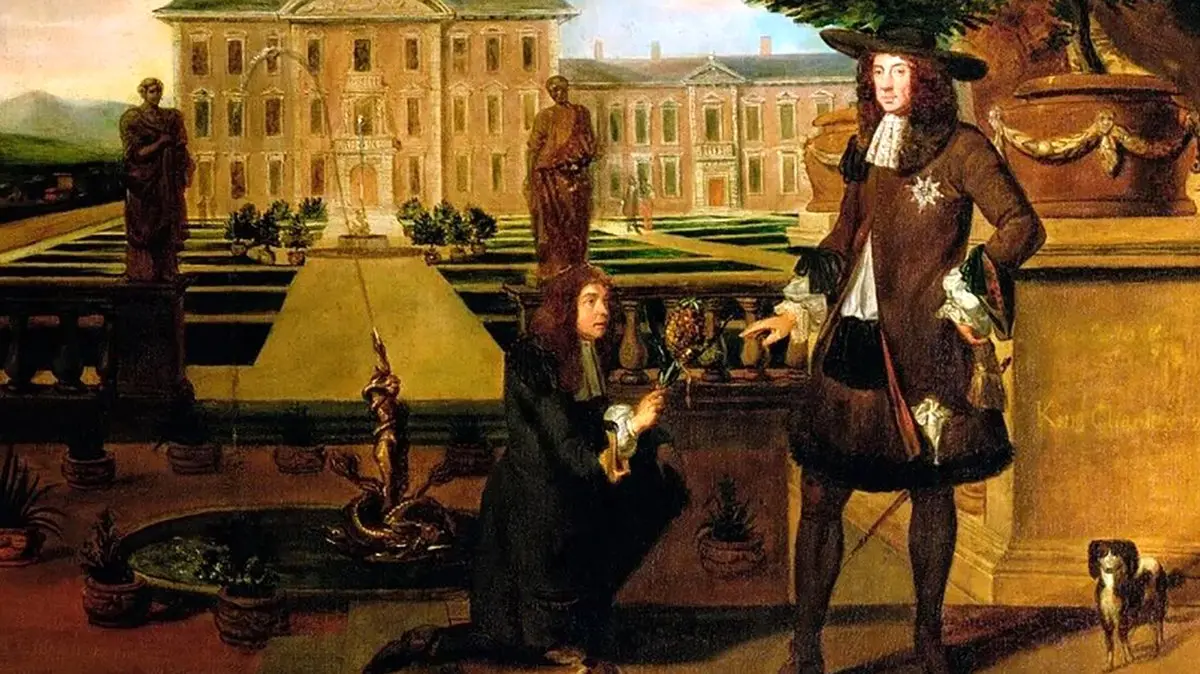 به گزارش رکنا، در یک تابلو ی نقاشی حدودا ۳۵۰ ساله، پادشاه انگلستان، چارلز دوم، در حالت ایستاده بر روی یک بالکن به تصویر کشیده شده در حالیکه باغبان سلطنتی مقابل او زانو زده و هدیهای عجیب به او تقدیم میکند.