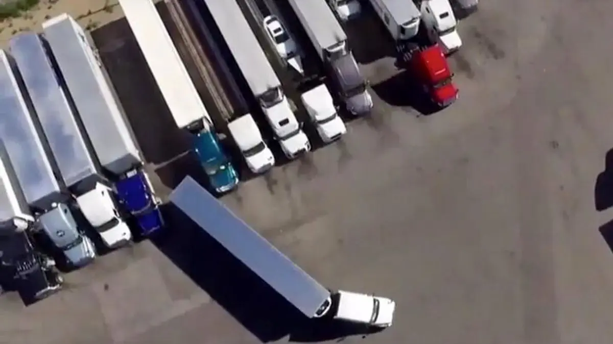رکنا: مهارت بالای راننده کامیون زن باعث شد تا یک کامیون نیمه تریلر را معکوس پارک کند.
