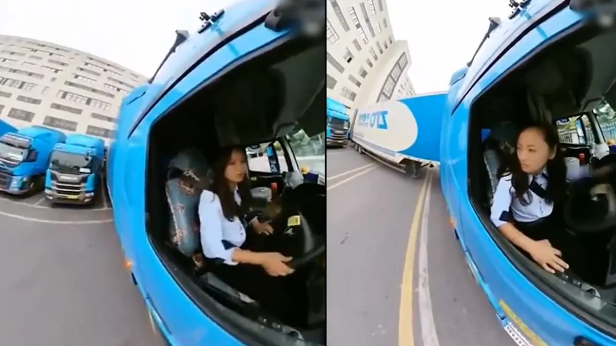 ببینید / پارک کردن حرفه ای کامیون توسط زن جوان + فیلم