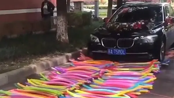 به گزارش رکنا، یک عروس و داماد در روز عروسی شان هنگامی که ماشین عروس به مراسم عروسی وارد شد از روی کلی بادکنک رنگی با ماشین رد شدند و صدایی مثل بمباران را در محوطه عروسی برپا کردند. این اقدام آنها از عجیب ترین اتفاقات در مراسم ازدواج بود. جزئیات بیشتر را در فیلم ببینید.
