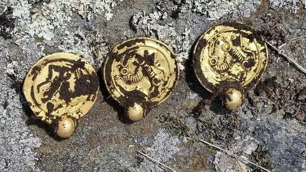 ارلند بلافاصله با یک باستانشناس تماس گرفت و عکسهایی از یافتهاش را برای او ارسال کرد. باستانشناس پاسخ داد که او یک گنجینۀ مربوط به «عصر مهاجرت» (568-375 میلادی) را کشف کرده است. در این گنجینه 9 صفحۀ فلزی شبیه به سکه وجود داشت که همگی دارای تصویر اسب بودند؛ تعدادی مهرۀ طلایی و سه حلقۀ طلایی مارپیچ هم در کنار صفحات پیدا شدند. وزن مجموع یافتهها به 100 گرم میرسید.