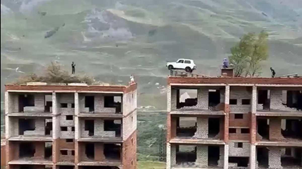 رانندهای که قوانین فیزیک را زیر سوال برد. راننده خودرو لادا در اقدامی عجیب از یک ساختمان چند طبقه پرید و باعث نابودی خودرو شد.