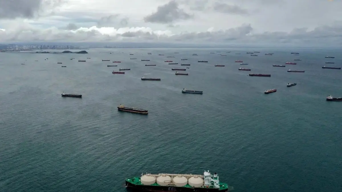 فیلم/ صف طولانی کشتیها در کانال پاناما در پی خشکسالی