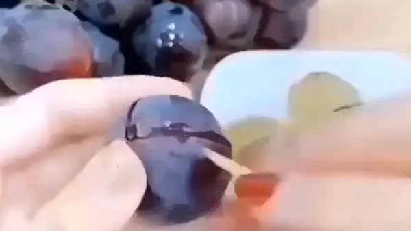 به گزارش رکنا، انگور از میوه هایی است که از تنوع گونه و رنگ برخوردار است. در این فیلم مشاهده می کنید که با استفاده از برش های نازکی که روی سطح انگور با استفاده از خلال دندان ایجاد می شود به راحتی می توان گوشت انگور را از پوست آن بدون اینکه کوچکترین آسیبی به بافت انگور وارد شود جدا کرد.