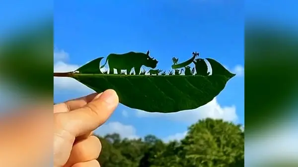 به گزارش رکنا، طراحی هنر خاصی است که اگر فرد قادر به انجام آن باشد روی هر سطحی می تواند طرح مد نظر خود را پیاده کند؛ از کاغذ گرفته تا برگ و شن و ماسه. در این فیلم مشاهده می کنید که روی یک برگ سبز انواع حیوانات و پرندگان و حتی انسان طراحی شده است و به کمک نحوه برش زدن برگ این موجودات از زرافه گرفته تا فیل و ماهی و کرگدن و خرگوش و خرس و ... روی سطح برگ دیده می شود.