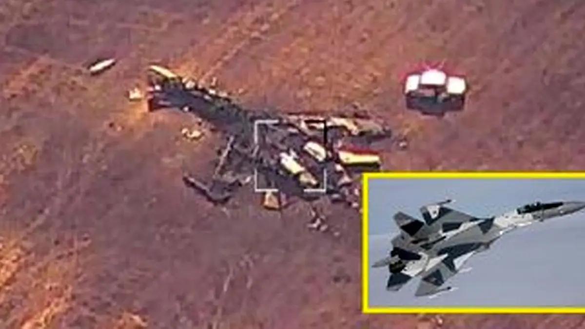 این تصویر تایید میکند که این جنگنده، سوخو-۳۵اس بوده که سرنگون شده است. ارزش صادرات آن بیش از ۱۰۰ میلیون دلار است که حکم گنج را دارد. بقایای هواپیما توسط پهپاد SHARK در نزدیکی Tokmak در منطقه Zaporizhzhya پیدا شد.