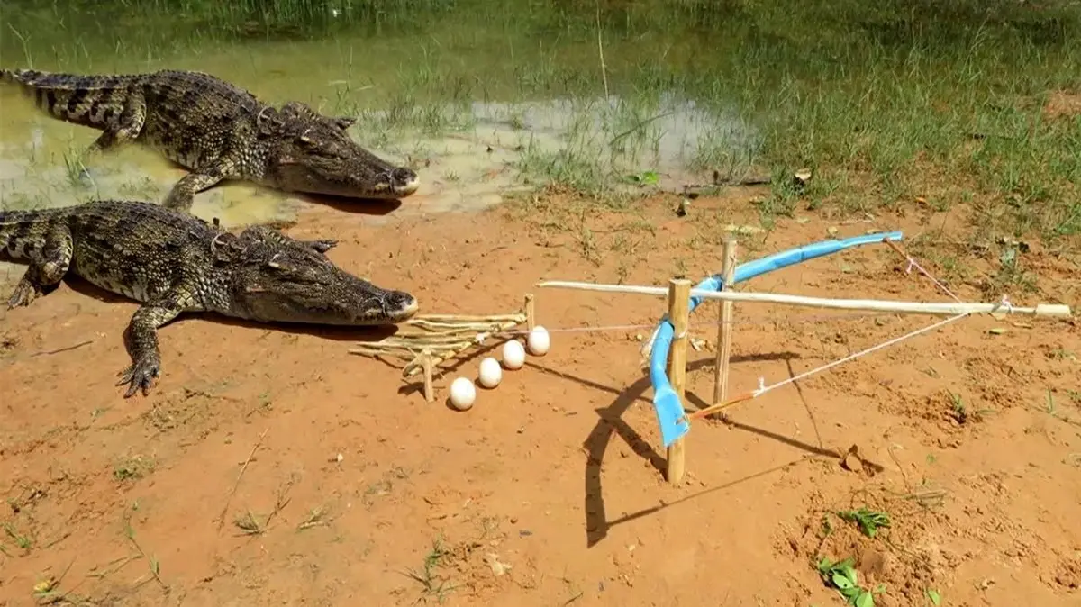 در این ویدئو یک جوان ویتنامی را می بینید که با وسایل ساده یک تله می سازد و یک تمساح را به دام می اندازد.