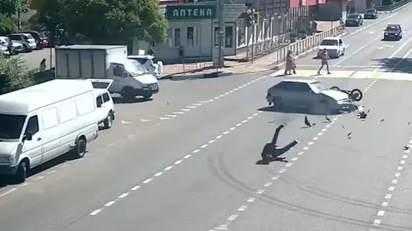 به گزارش رکنا، در این فیلم مشاهده می کنید که در یک چهارراه در خیابان از یک سمت خودروی سواری در حال عبور است و از سمت مقابل یک موتورسوار با سرعت بسیار بی توجه به حرکت خودرو به راهش ادامه می دهد و درنهایت اتفاقی که نباید می افتاد رخ داد و 2 راننده تصادف وحشتناکی کردند و موتورسوار از روی موتور به زمین افتاد.