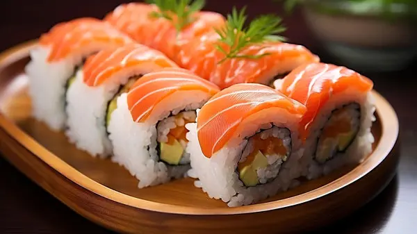 رکنا: سوشی یک غذای ژاپنی است که معمولاً از برنج چسبناک و سرکهدار به همراه مواد مختلفی مانند ماهی خام، سبزیجات و تخممرغ تهیه میشود. این غذا ممکن است به صورت رول شده در نوری (الواح جلبک دریایی) یا به صورت قطعاتی از ماهی یا دیگر مواد پروتئینی سرو شود.