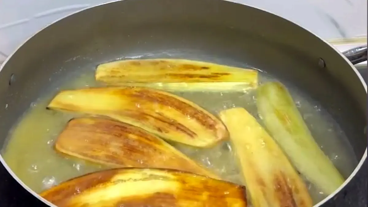 ویدیویی از طرز سرخ کردن بادمجون بدون جذب زیاد روغن منتشر شد؛ کافی است کمی روغن را گرم کرده و سپس کمی آرد گندم اضافه کنید.