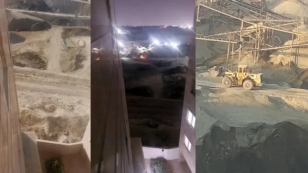 صدای شبانه‌روزی فعالیت معدن بیخ گوش ساکنان شهرک فرزان؛ مردم دیگر تاب ندارند! / فاصله باید حداقل ۵۰۰ متر باشد + فیلم