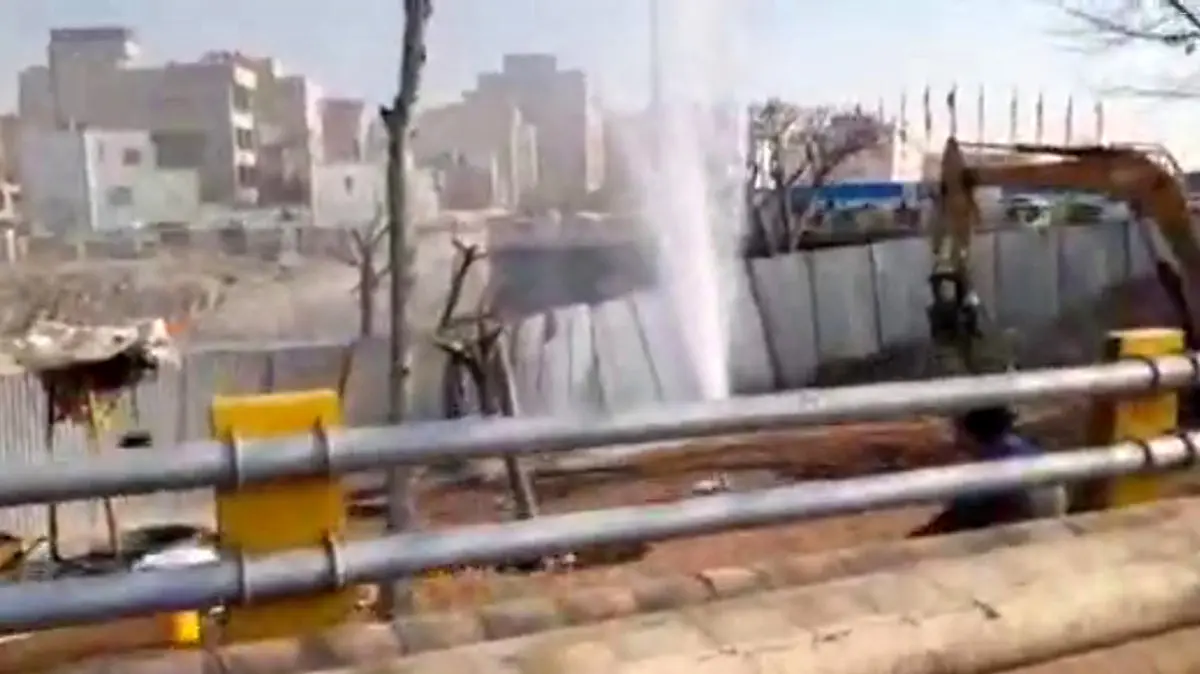 فواره شدید آب شهری در قلب تهران / اعزام نیروهای امداد آبفا به میدان سبلان + فیلم