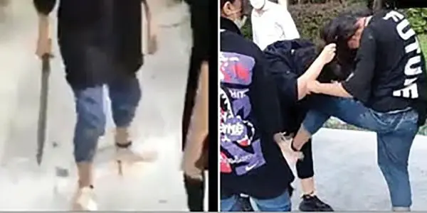 فیلم درگیری دختر قمهکش با فحاشی در شهرک ولیعصر تهران ! / ببینید