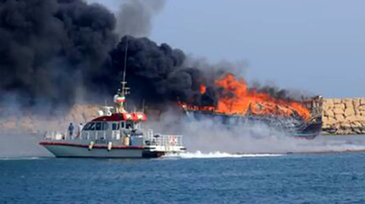 فیلم آتش گرفتن لنج ایرانی / لحظه نجات سرنشیان لنج را ببینید !