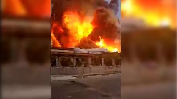 نزدیک ترین فیلم از لحظه انفجار اسکله شهید رجایی / موج انفجار فیلمبردار را پرتاب کرد