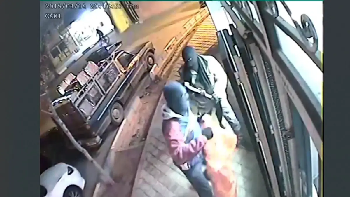 این سرقت در شب چهارشنبه‌سوری و در شرایطی رخ داد که خیابان‌ها به‌شدت شلوغ و پر ازدحام بودند؛ موضوعی که احتمالاً به سارقان برای اجرای نقشه‌شان کمک کرده است. در لحظات ابتدایی فیلم دوربین مداربسته دیده می‌شود که یکی از سارقان پس از نزدیک‌ شدن به مغازه، خم می‌شود و یک شیء فلزی قلاب‌مانند را در قسمت قفل مغازه قرار می‌دهد. هدف از این کار، مسدود کردن درب از بیرون بوده تا طلافروش که در آن لحظه داخل مغازه حضور داشته، نتواند از مغازه خارج شود.