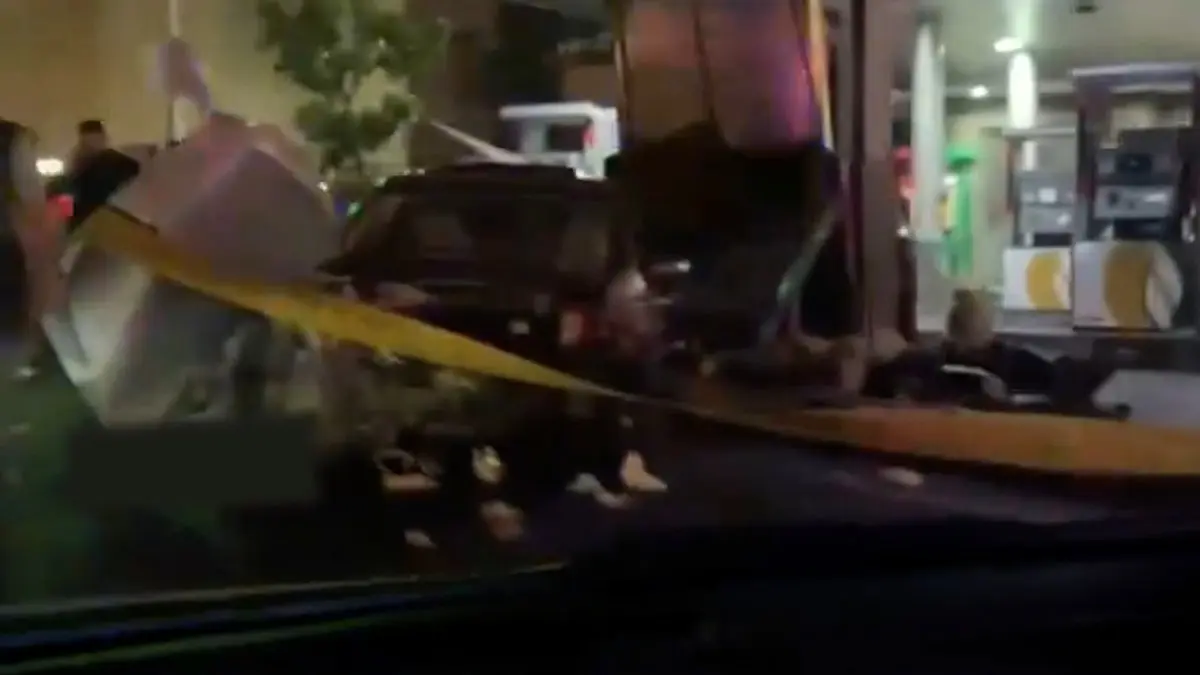 تصادف شدید در پمپ بنزین گیشا/وضعیت سرنشینان نامشخص است