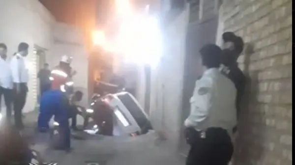 فرورفتن خودرو در گودال ناشی از نشست زمین در کاشان + فیلم
