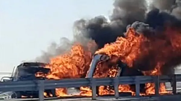 تصادف مرگبار و آتشین در تربت‌حیدریه / 3 نفر در آتش سو ختند + فیلم