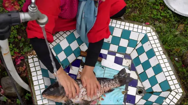 طرز تهیه کباب ماهی در سفال و در طبیعت گیلان / فیلم