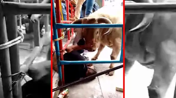 در یکی از میادین گاوبازی، یک تماشاگر به‌شدت توسط یک گاو مورد حمله قرار گرفت و با ضربات پی‌درپی به پشت و بدنش از حال رفت.