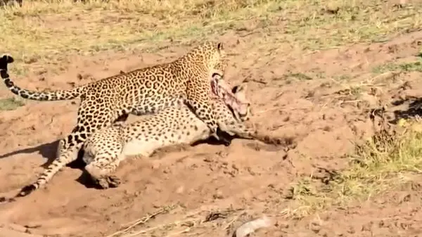 فیلم شکار شدن یوزپلنگ توسط پلنگ