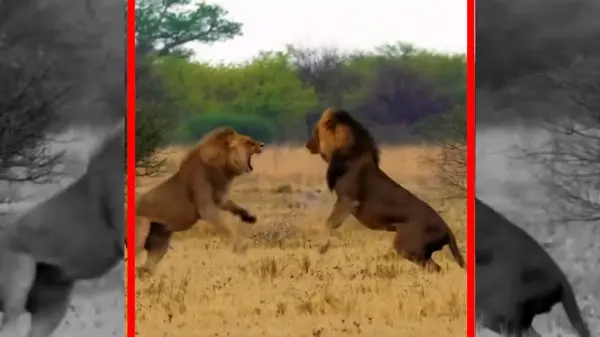 در این تصاویر، نبردی شدید میان شیرها بر سر تصاحب و حفظ قلمرو به نمایش گذاشته شده است. چنین درگیری‌هایی اغلب میان شیرهای نر رخ می‌دهد و نقش تعیین‌کننده‌ای در ساختار گله، دسترسی به ماده‌ها و منابع غذایی دارد. این نبردها که با غرش، تعقیب و درگیری فیزیکی همراه است، بخشی از واقعیت خشن اما طبیعی حیات‌وحش و رقابت برای بقا محسوب می‌شود.