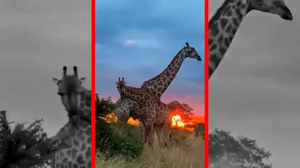 این ویدیو لحظهای آرام و دلنشین از یک زرافه جوان را در کنار مادرش هنگام غروب آفتاب به تصویر میکشد. نور گرم خورشید و سایههای طولانی، زیبایی و لطافت این لحظه طبیعی را دوچندان کرده و نمایی شاعرانه از زندگی وحش و ارتباط صمیمی مادر و فرزند در دنیای حیوانات ارائه میدهد.