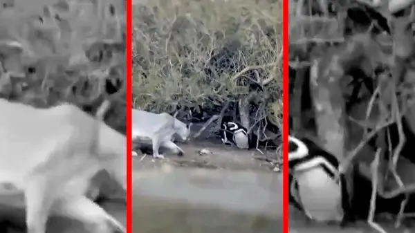 فیلم شکار پنگوئن توسط شیرهای کوهی در پاتاگونیا