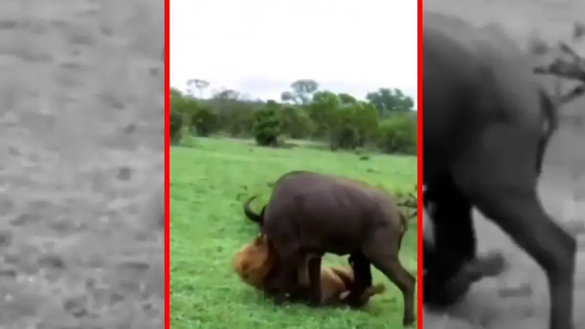 فیلم حمله مرگبار شیر نر به گاومیش