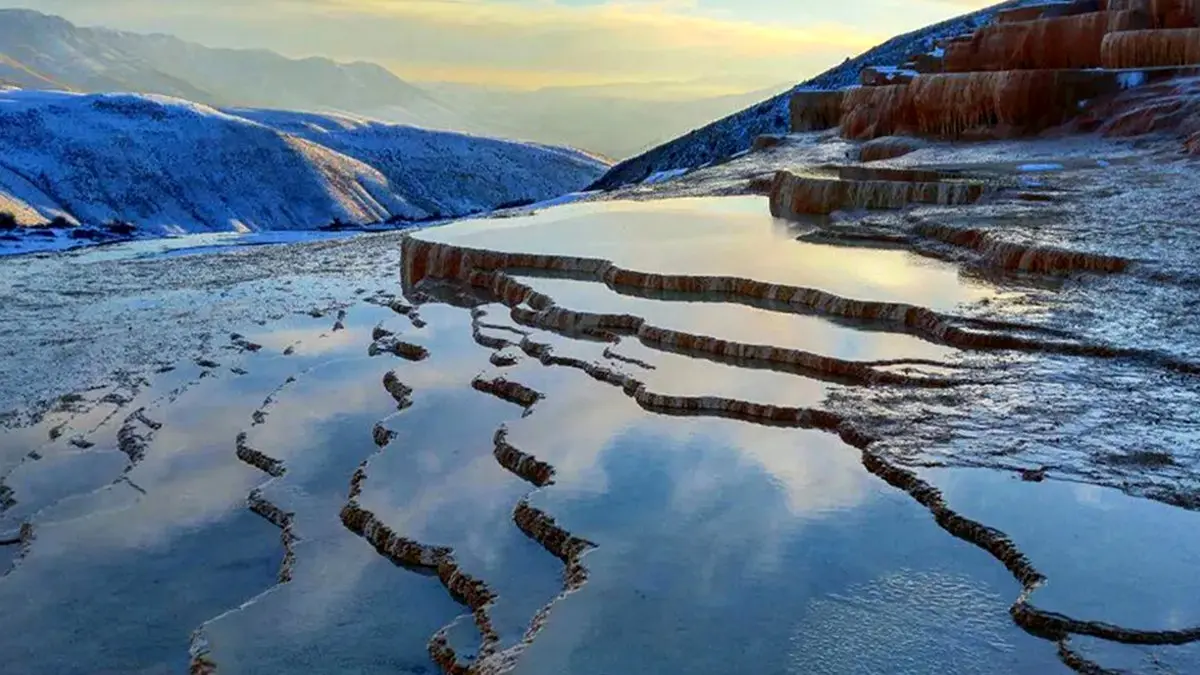 چشمه های پلکانی باداب سورت در برف + فیلم