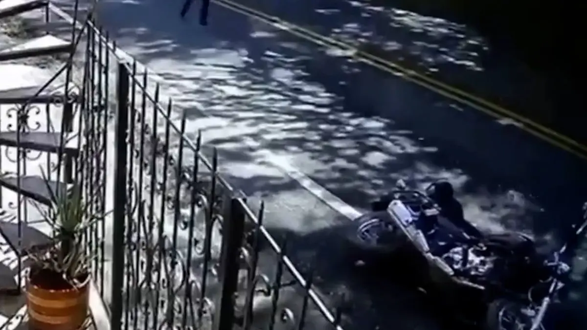 فیلم سقوط سنگ غول پیکر روی موتورسیکلت