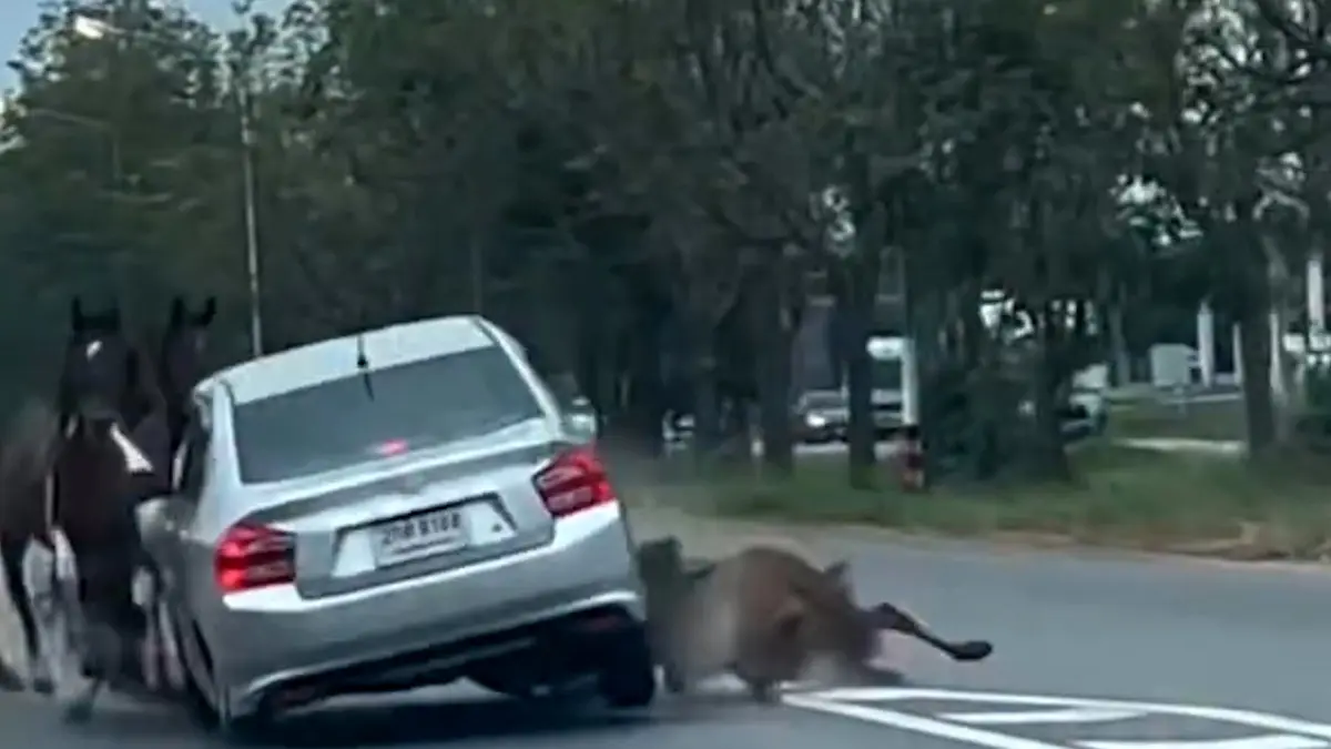 فیلم حادثه دلخراش برخورد ماشین با اسبها