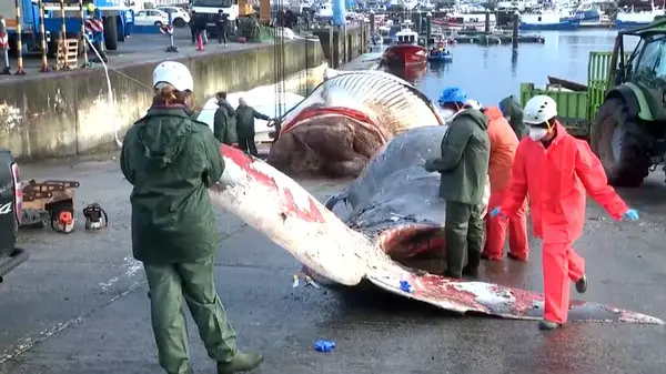 پیکر بیجان یک نهنگ عظیم الجثه به طول ۲۱ متر و وزن تقریبی ۳۰ تُن، روز سهشنبه ۲۵ آذرماه پس از رسیدن به ساحل، در بندر لاکرونیای اسپانیا از آب خارج شد. نهادهای دریایی این کشور برای جلوگیری از تکه تکه شدن لاشه، با استفاده از جرثقیل های سنگین و همراهی تیمی از کارشناسان، عملیات انتقال نهنگ را انجام دادند.